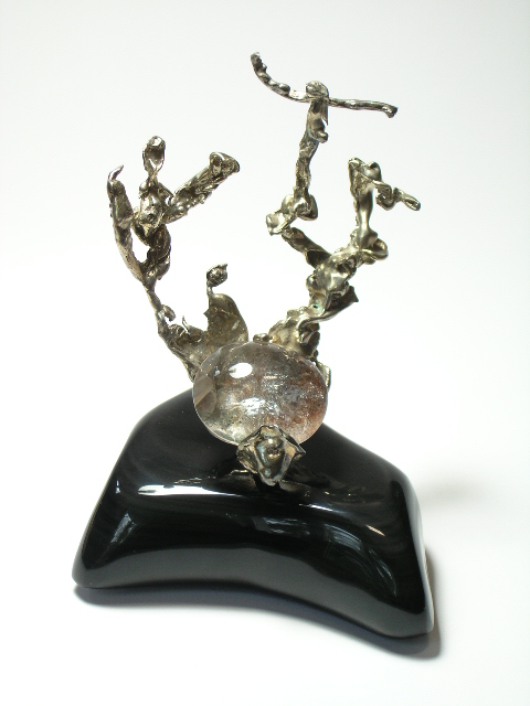 Höhe: 15 cm, Material: Obsidian, Silber, Chloridquarz